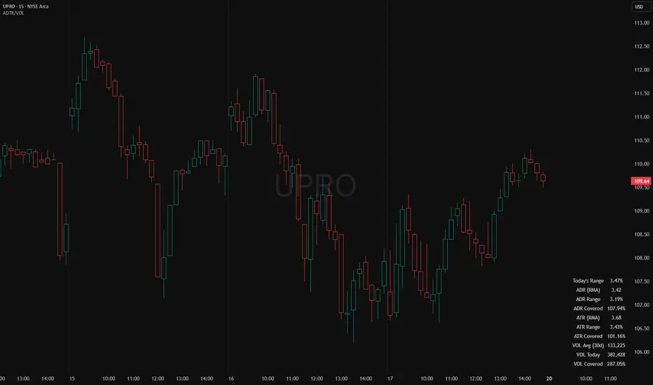 Example: ADR (D) reading is 100% at market close but ATR (D) is at 70% at close. This suggests that there is a potential (coverage) move of 30% in Pre/Post market as suggested by averages.