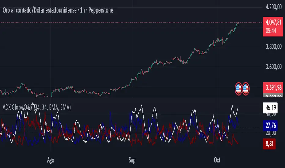 The ADX Globx Options & Futures is a custom-built trend strength indicator designed to replicate and enhance the classic Average Directional Index (ADX) model, commonly used in professional trading platforms such as IQ Option.