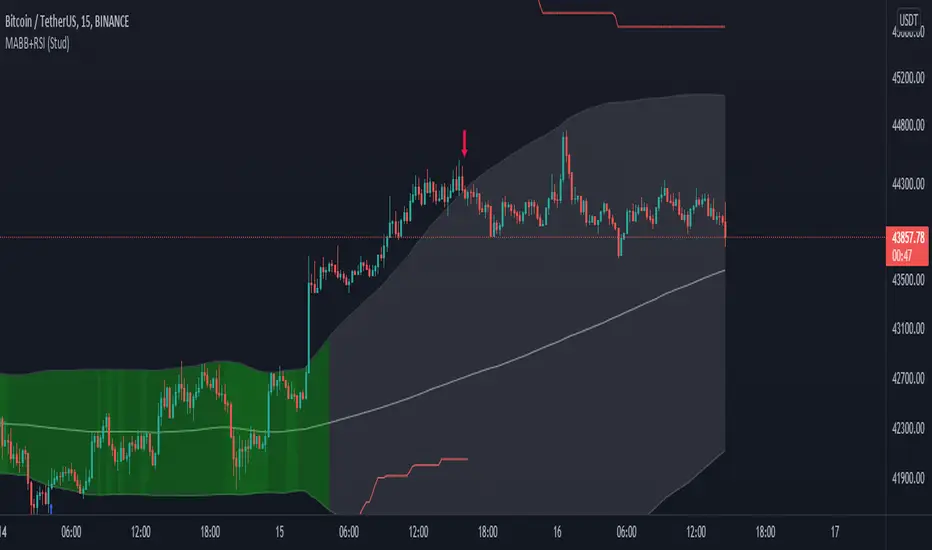 This study/indicator script is meant to allow users to set alerts based on my MA Bollinger Bands + RSI (Strategy).