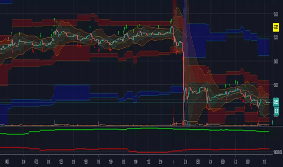 Added simple alert conditions for when price crosses the Inner Liquidation Levels. Be warned that especially for 100x levels, after high volatility candles you will get false alerts. High volatility candles during a dump/pump will trigger a recalc of the levels and generate large liquidation areas that often get crossed by any bounce that occurs.Script protetto