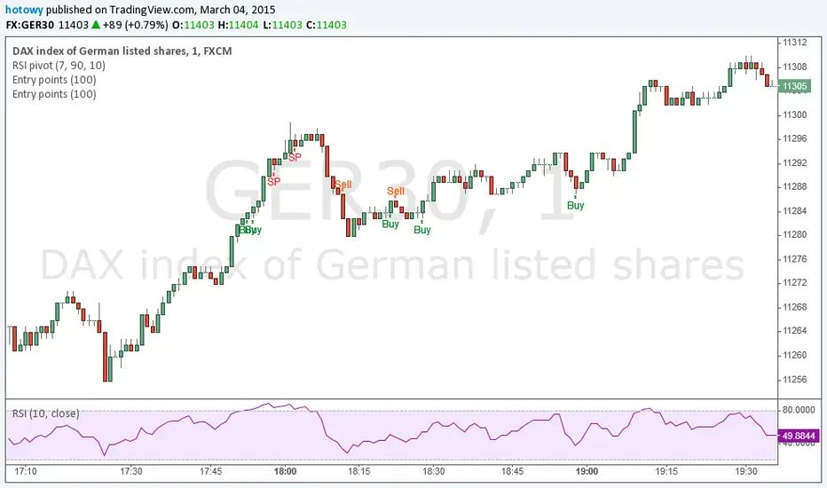 This great and simple indicator based on EMA generates information about entry points at close of the candle. First signal is the best entry point but you can re-enter at the next. IMPORTANT: this script does not generate exit signals and those shoud be find using money management rules or else. Perfectly catches long runs in trends at all underlayings (forex, stocks, indexes, commodities) at all timeframes. Period=100 works best independently on timeframe but I encourage you to try other. Lower period gives more incorrect signals and shorter runs, higher period gives you late entry and less. Ofcourse it gives false signals from time to time but fortunately it makes a correction very fast. Try it! Good luck and good traiding!