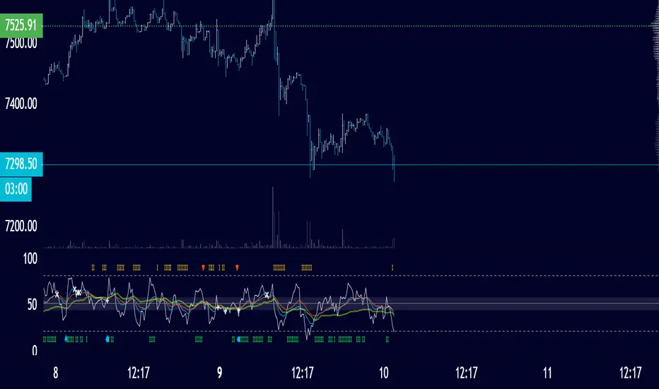You will notice the cyan FAST LINE will LEAD , confirmation of trend reversal is when SRSI breaks above and the above follows.