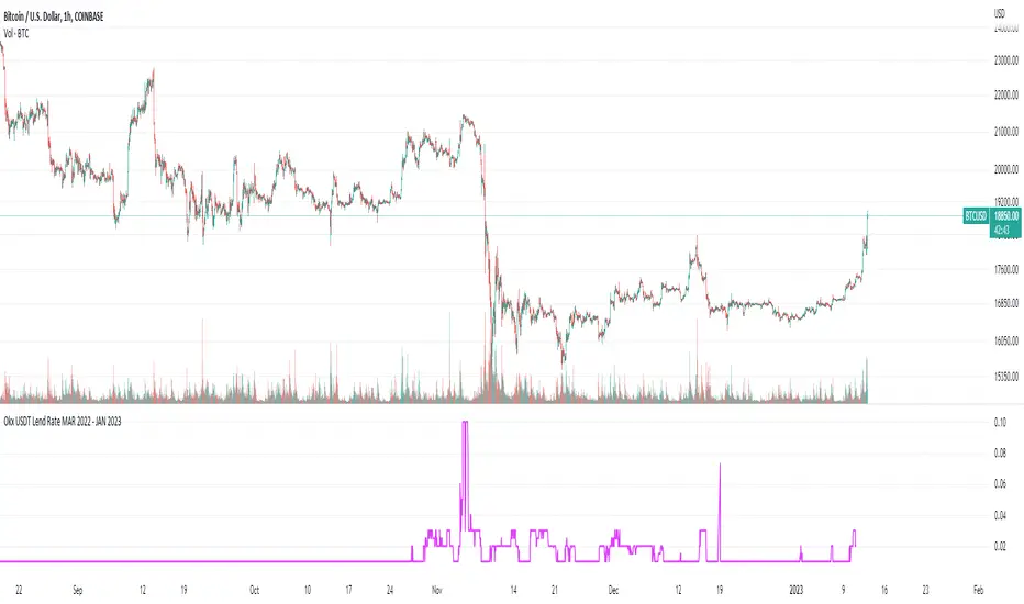 OKx USDT hourly lend rate from MAR 2022 to JAN 2023. Use with hourly chart