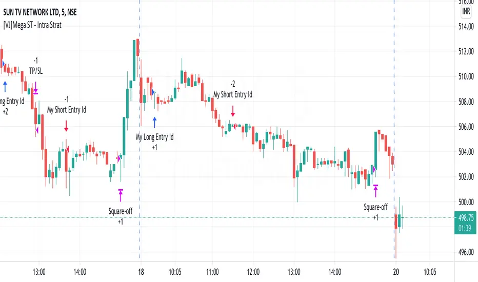 This is a simple intraday strategy for working on Stocks or commodities based out on Super Trend and intraday's best friend - VWAP . You can modify the start time and end time based on your timezones. Session value should be from market start to the time you want to square-off