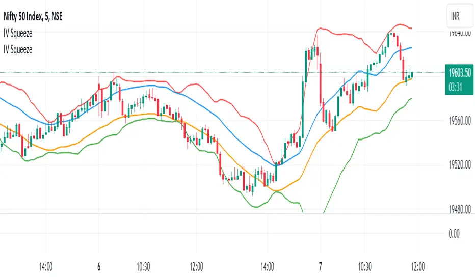 This script calculates both Bollinger Bands and Keltner Channels on a 5-minute chart. It identifies IV squeeze conditions when the lower Bollinger Band is above the lower Keltner Channel and the upper Bollinger Band is below the upper Keltner Channel. When a squeeze is detected, it plots a red triangle below the chart bars and alerts you with a message.