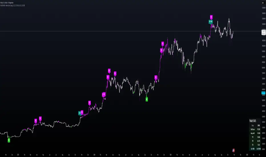 أداة “Matrix” تجمع خريطة اتجاه متعددة الآفاق (10→120) مع مذبذب حجمي محسّن بأسلوب VZO لإبراز مناطق تجميع مقابل تشبّع/ارتفاع مبالغ، وتطبع BUY/SELL فقط عند توافق الشرطين. مُجرّبة أساسًا على الذهب (XAUUSD) والعملات الرئيسية (BTC, XRP, ETH, BNB, LTC). يُنصح بالتحقق في الأسواق الأخرى وباستخدام وضع الإغلاق لمنع أي تغيّر لحظي (repaint)