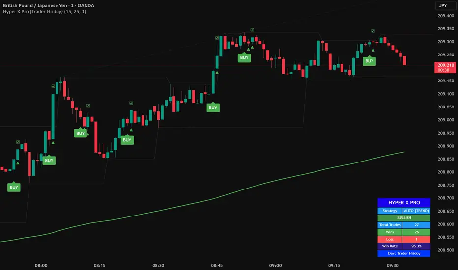 The Hyper X Pro Strategy System is a comprehensive technical analysis tool designed to identify potential breakout and reversal setups in the market. By combining classic Pivot Point Analysis with advanced Dynamic Trendline Projections and an EMA-based Trend Filter, this indicator seeks to provide high-probability entry points while filtering out market noise.