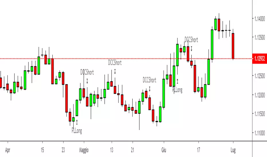 Various types of trade can be made as it is valid for all types of markets and timeframes and could be excellent for short term trading or scalping based on the timeframe used. It is based on the Dark Cloud Cover, a bearish pattern that I improved by adding filters to identify the most significant ones and there is nothing left but to enter short in the case of the Dark Cloud Cover that I set with an arrow down, over the candle , and the word DCCShort.