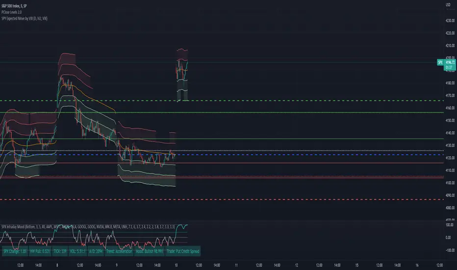 This script plots the levels generated via a combination of SPX 2Y Quartiles for everyday, red days, and green days. It is intended for use solely with SPX.