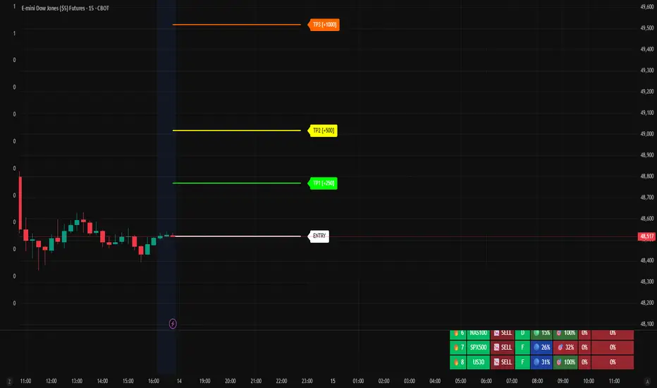 • Switch between Futures (250/500/1000), Forex (25/50/100), and Commodities (25/50/100) TP levels