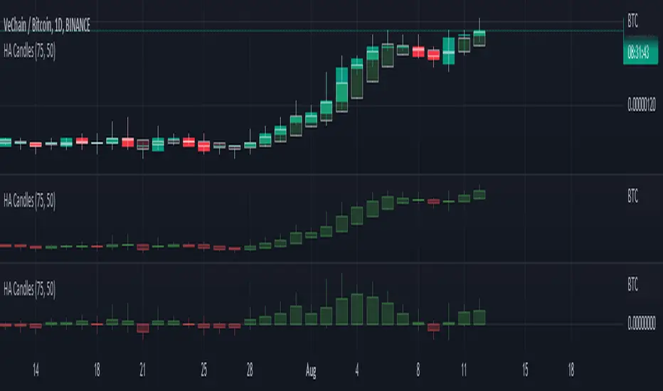 // For overlaying Heikin Ashi candles over basic charts, or for use in it's own panel as an oscillator.