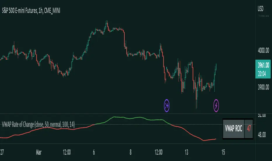 Divergence: Traders can look for divergences between the VWAP ROC and the price. For example, if the price is making higher highs, but the VWAP ROC is making lower highs, it suggests that the trend is losing strength, and a reversal may be imminent.