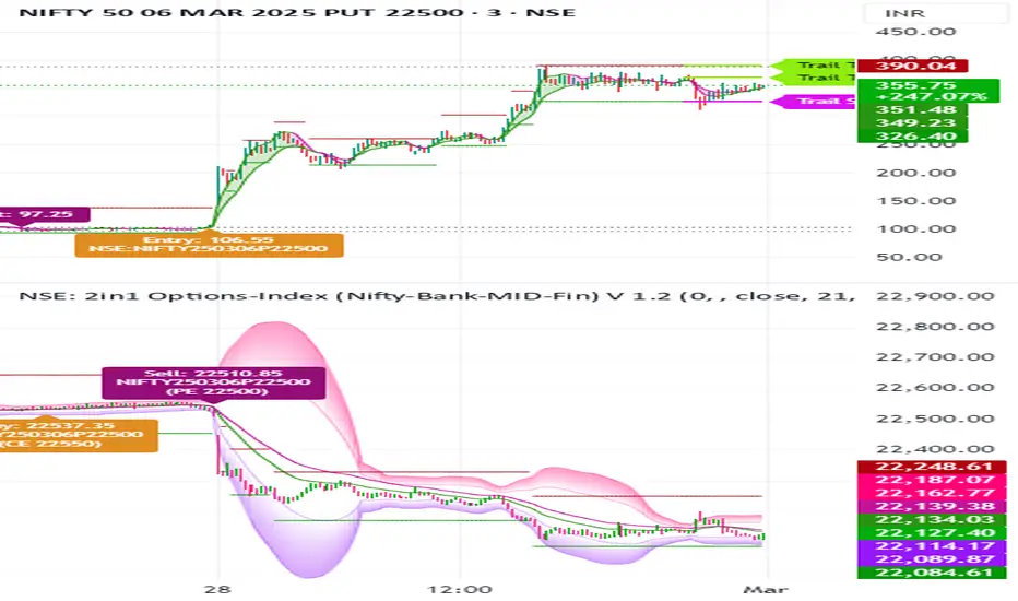 Dual-Chart Functionality: This indicator allows you to monitor two charts simultaneously – the main chart (Options) and the underlying index chart (NIFTY, BANKNIFTY, etc.).