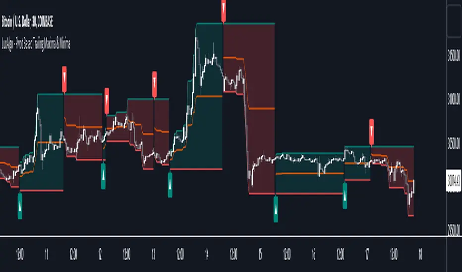 Aggiornato Pivot Based Trailing Maxima & Minima [LuxAlgo]