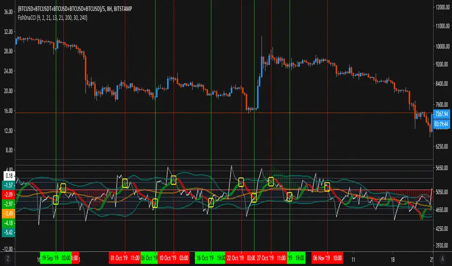 1. CCI crosses under Fisher Transform, the higher above 0 the better.