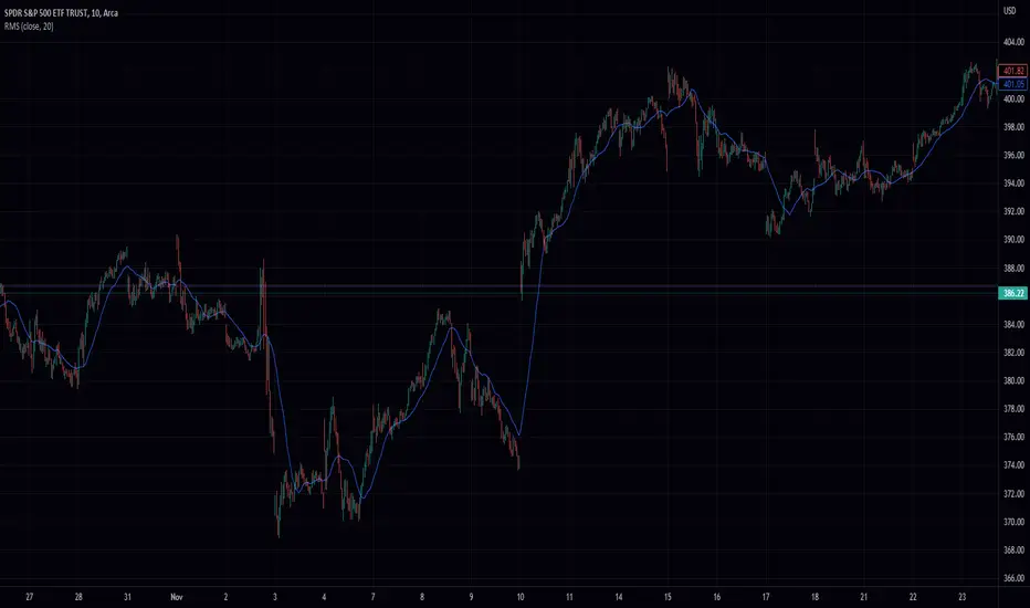 The RMS indicator implemented in this script can be used to measure the magnitude of a time-varying signal. By adjusting the length parameter, users can control the number of data points included in the RMS calculation and fine-tune the indicator to their specific needs.
