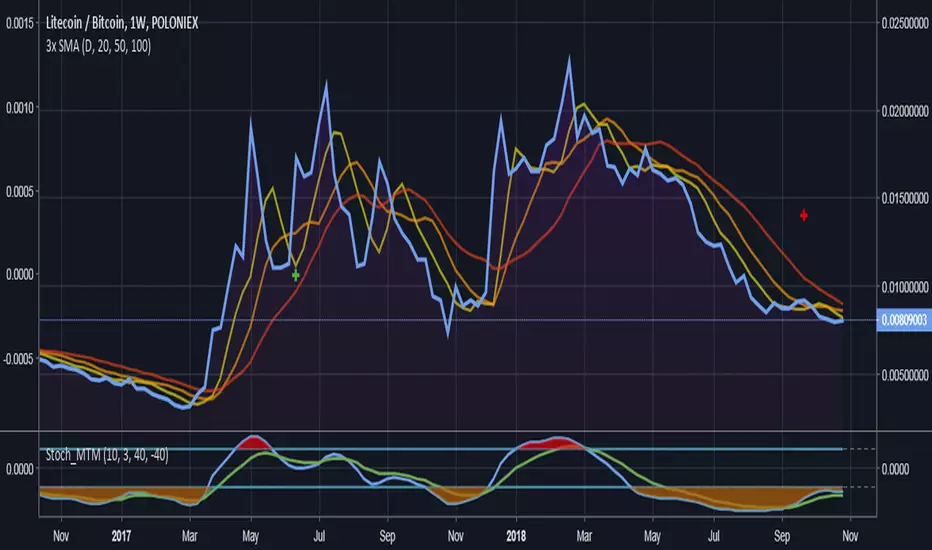 Can optionally show a cross when MA 1 crosses MA 3. These are colors such that when MA 1 crosses BELOW MA 3 a red cross is shown, and green when crossing above.