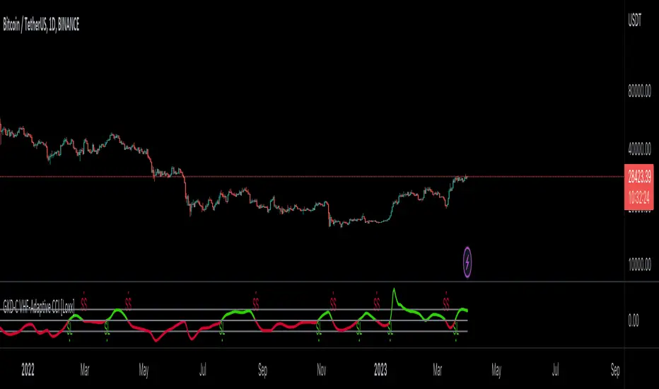 This indicator adapts to a VHF filter output. This is done by calculating a period output from the VHF filter. This value is then used to calculate CCI. This adaptivity allows CCI to adjust to price movement more accurately thereby reducing noise and improving signal quality.