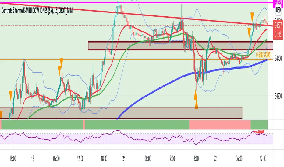 Draw an arrow if candle corpse is out of Bollinger Band (Upper / Lower)