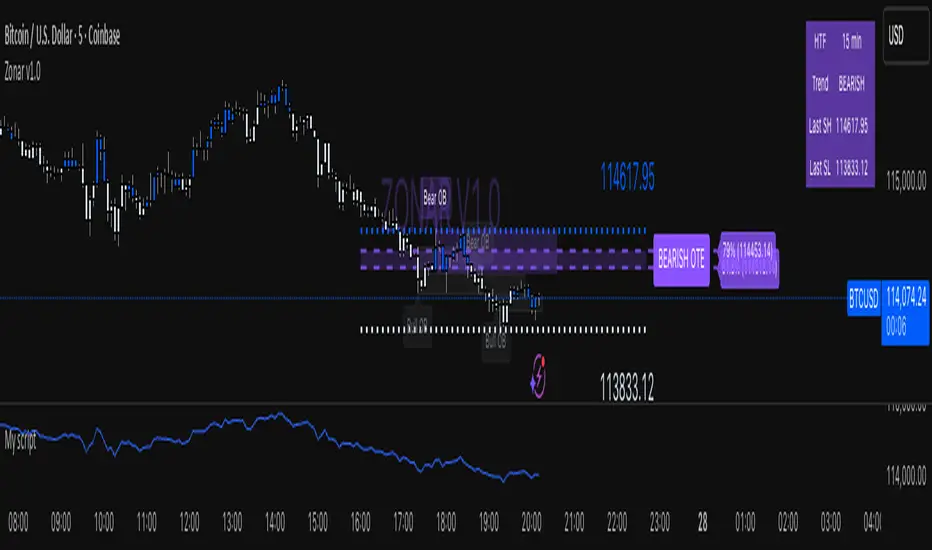 Unlike typical SMC indicators that simply draw order blocks or FVGs, Zonar reconstructs market intent by dynamically grading and updating structural zones as they evolve.