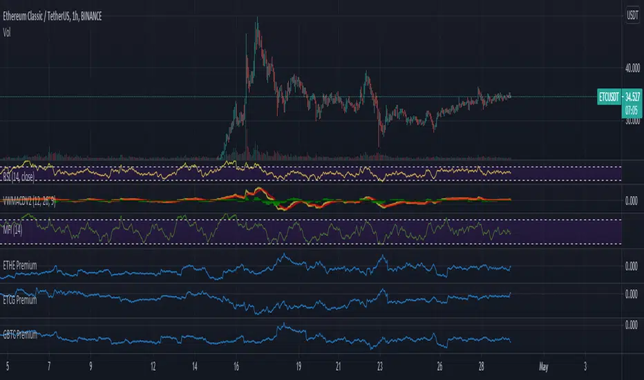 This script simply shows the premium (when positive) and discount (when negative) associated with GBTC as compared with its estimated NAV based on BTC underlying holdings. This will of course need to be updated frequently for accuracy, but it serves as a rough estimate for educational purposes.