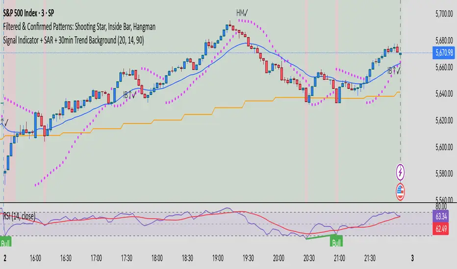 Higher timeframe (30-min) trend: Acts as a filter (optional background color).