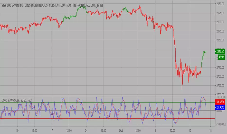 This indicator plots Chandre Momentum Oscillator and its WMA on the