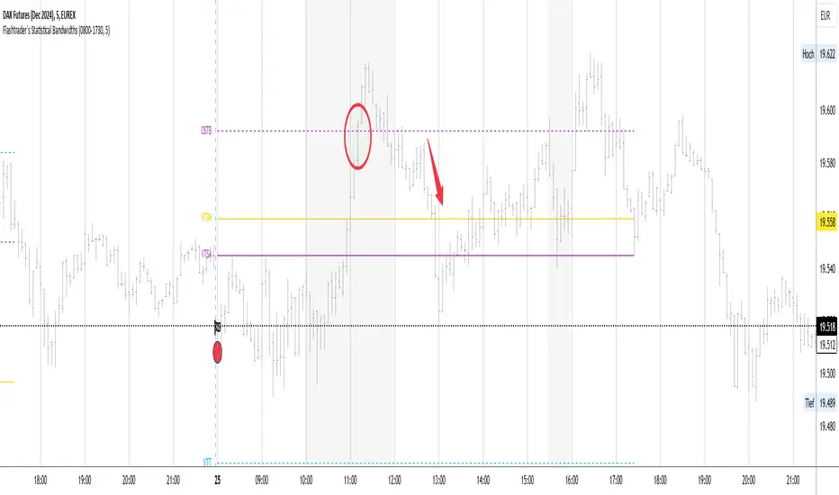 Obere statistische Bandbreite = oSTB (violette gestrichelte Linie im Chart)