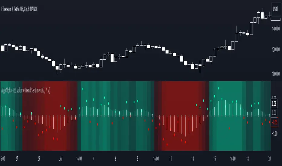 In summary, the Volume-Trend Sentiment by AlgoAlpha is a comprehensive tool that enhances market analysis through a unique blend of volume and price trends. Whether you're a seasoned trader or just starting out, this indicator offers valuable insights into market sentiment and helps in making informed trading decisions. 📈📉🔍🌐