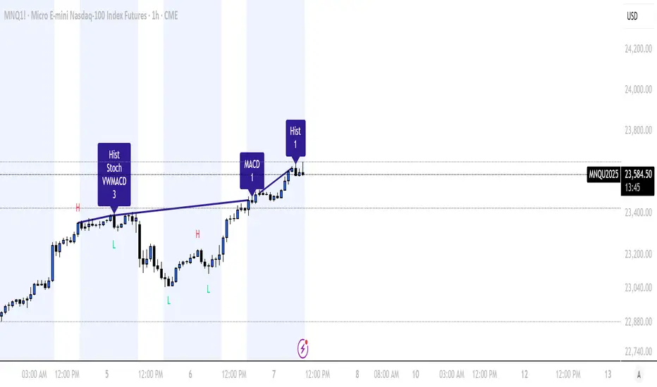 Shows divergence for well known indicators. Allows option to create alert for 4 or more divergences signaling.