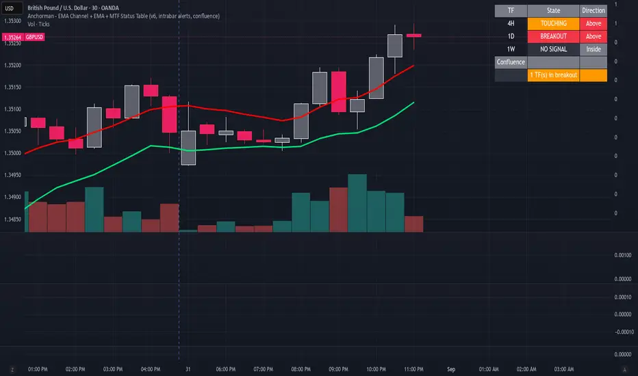 Aggiornato Anchorman - EMA Channel + EMA + MTF Status Table PRICE BREAKOUT