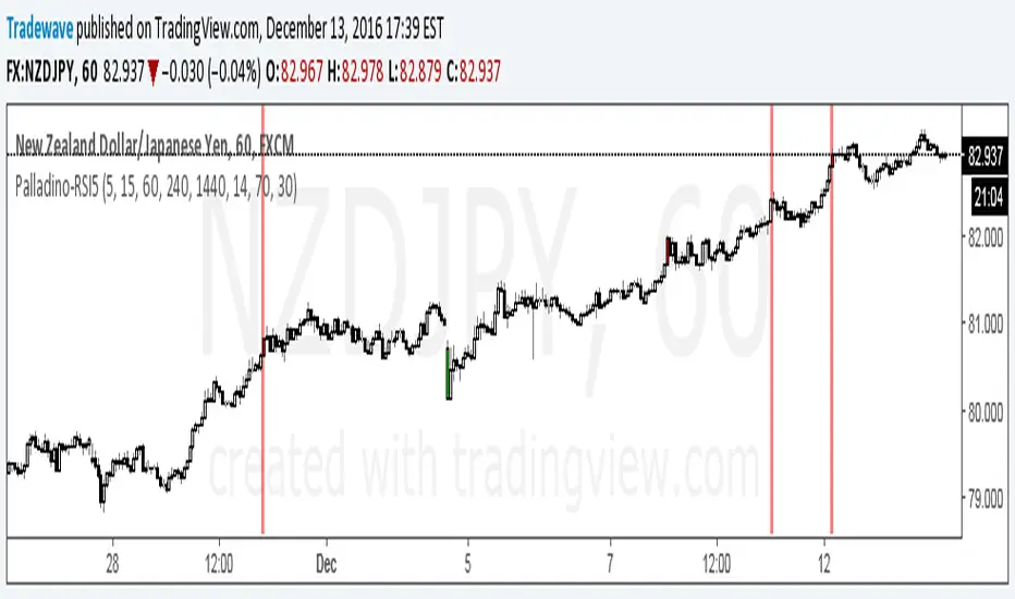 If Time frame 1, 2, 3, 4 and 5 are all overbought then a vertical red line is added to the plot