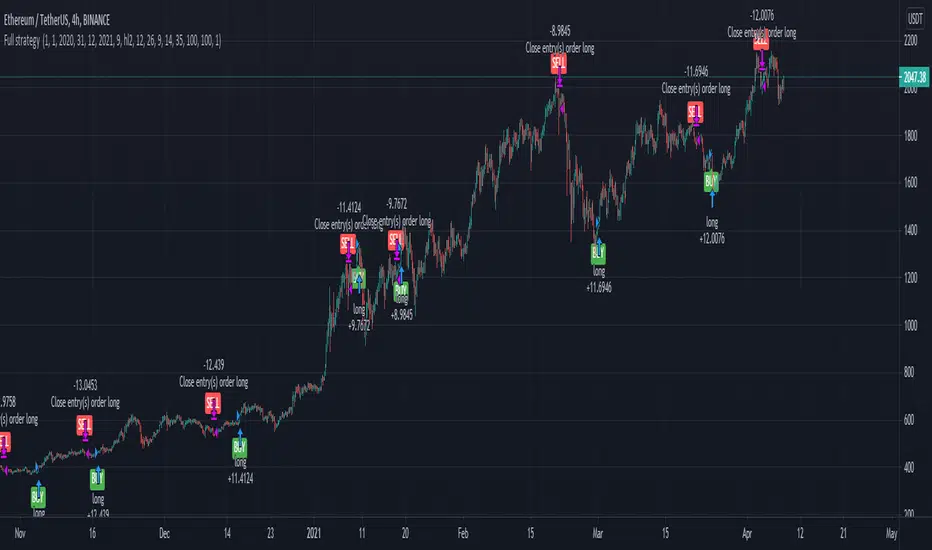This is a simple, yet very efficient crypto strategy, adapted to 4h time frame, on big coins like ETH and BTC. However it can be adapted to other markets, timeframes etc