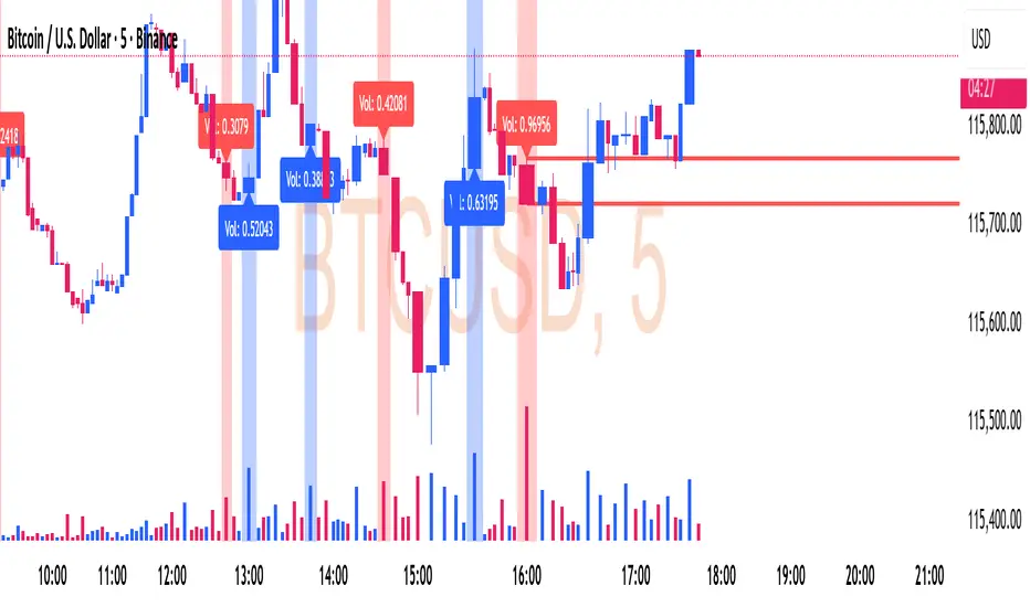 Ultra High Volume happens when a candle’s trading volume is much higher than the average volume of the last few bars.