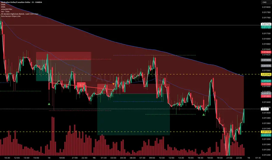 FX Session High/Low Bands - Last 5 EST Days