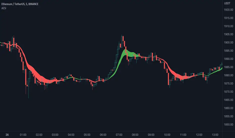 Bullish Cloud: When the AESI line is above the EMA line, the cloud is green, indicating a potential bullish market condition.