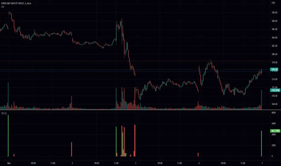 This script is meant to only show you the most significant volume moves. The way it works is it takes the cumulative sum of the delta of the volume. You can go from current all the way to ten bars back in your delta window.