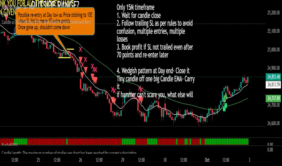 It highlights candles which have become extended from EMA. It could be used to protect profits in parabolic moves or when the script becomes too extended.