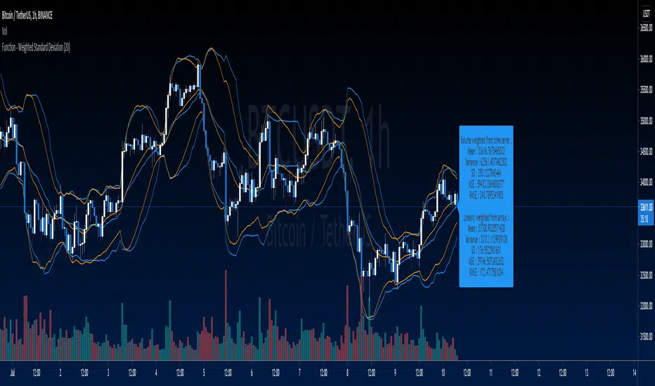 Calculates weighted mean, variance, standard deviation, MSE and RMSE from time series variables or arrays.