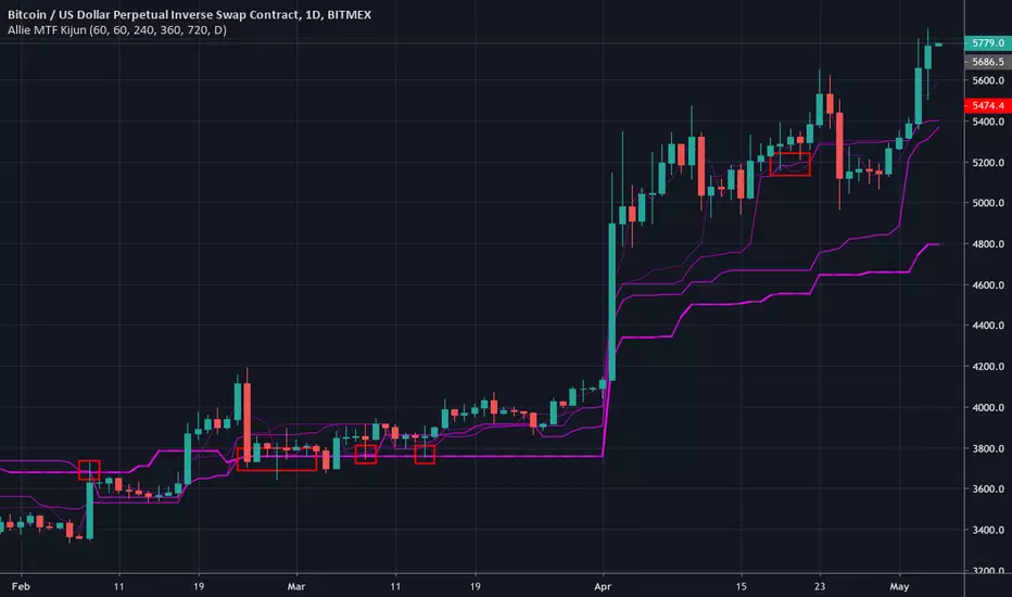 Multi-timeframe kijun. The current timeframe's kijun is represented with dashed line.
