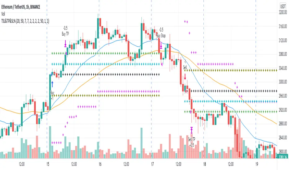 -Added take profit option, at a chosen price in % for a chosen % of equity-After take profit took place, the stop loss updates to a chosen price level in % in advance of the entry price, thereby securing profit.