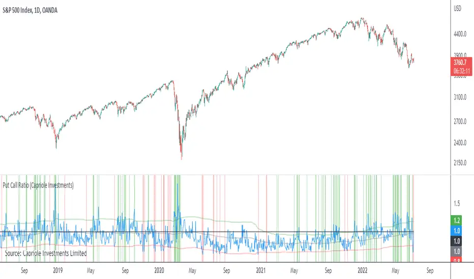 Plots the CBOE Put Call Ratio and marks up locations of extremities.