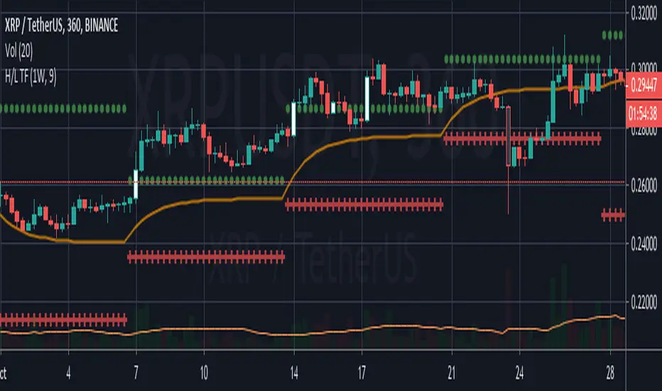I'm testing a simple but useful indicator that plots the high and low for the current week. The time-frame can be selected by the user.