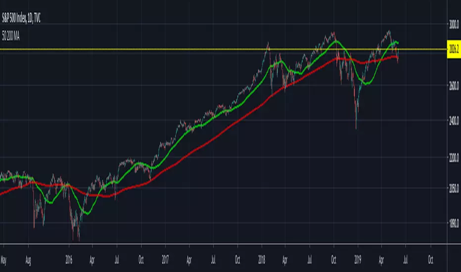 Uncluttered 50 & 200 Simple Moving Average Indicator in one place.