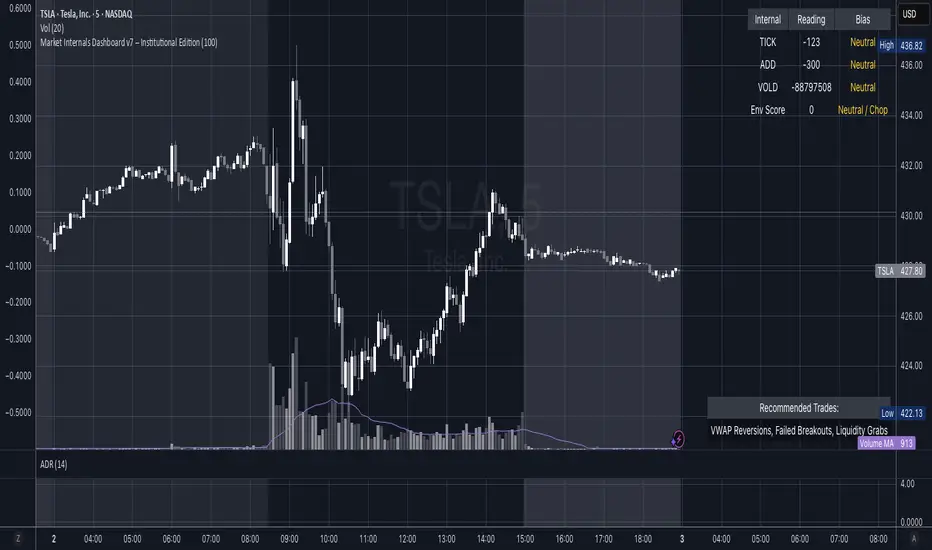 The Market Internals Dashboard v7 – Institutional Edition provides a full, real-time market condition model using true NYSE internal data, the same core signals used by professional traders at prop firms and institutional desks.