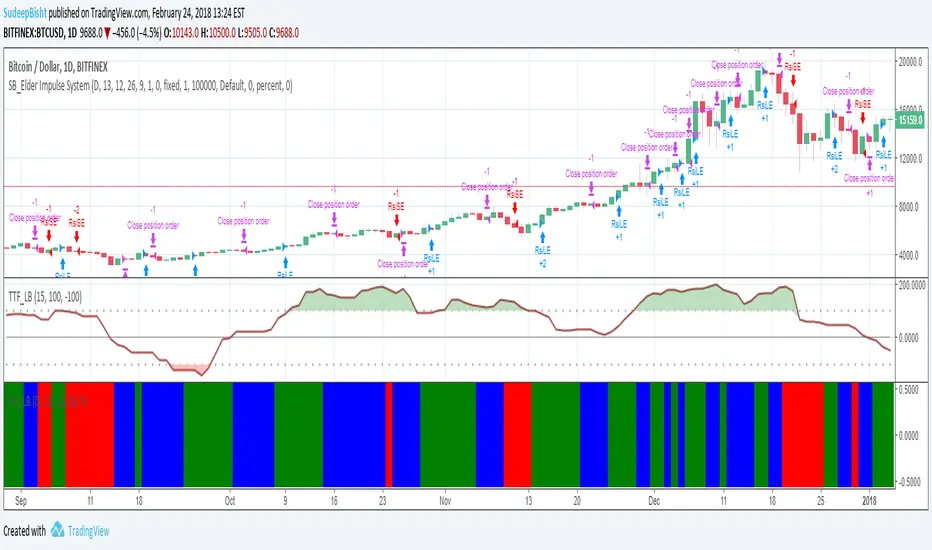Close trade/Profit booking: When the blue bar in the Elder Impulse System's indicator shows up