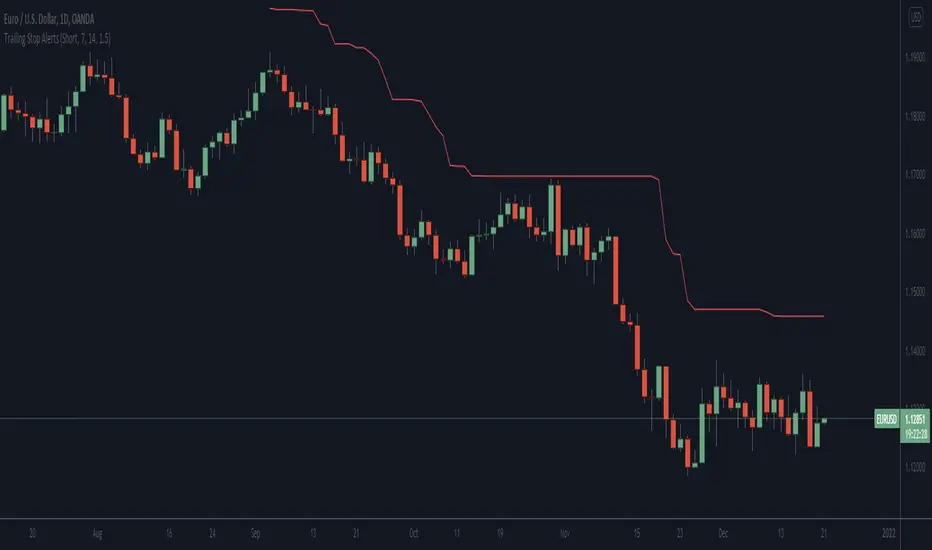 Alert Conditions: Trailing Stop Update will trigger whenever the stop is updated, Trailing Stop Hit will trigger whenever the stop is hit.