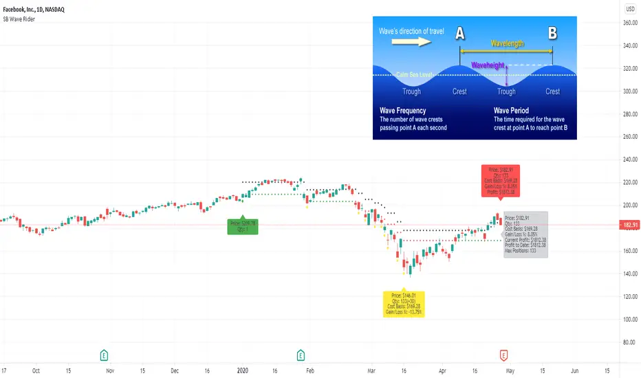I want to briefly describe why this is called the wave rider. Imagine a wave. The top of the wave (crest) can be viewed as the highest point of the wave. The bottom of the wave is considered the trough. The wave height can be measured as the distance from the top of the crest to the bottom of the trough. We ride the wave from the top, all the way down, then all the way back up to the top, where we secure our profit and deleverage our positions. Then we paddle back out and start the process all over again.