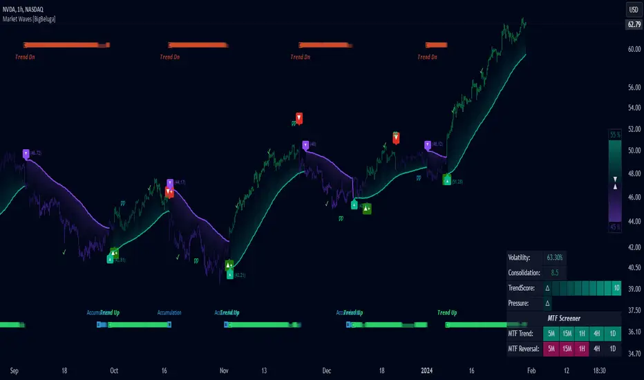 Market Waves The Market Waves [BigBeluga] is an all in one toolkit focusing on trends, accumulations and identifying market structures right on your chart. It is lightweight and powerful in its approaches, taking unique mathematical approaches to classical tools.