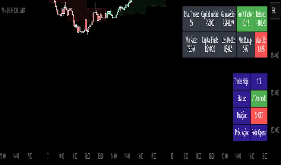 A comprehensive day trading strategy developed specifically for trading the Mini Index (WIN) on the Brazilian market (B3). It combines multi-timeframe technical analysis, trend/sideway filters, advanced risk management with ATR, and strict controls on the time and number of daily trades.
